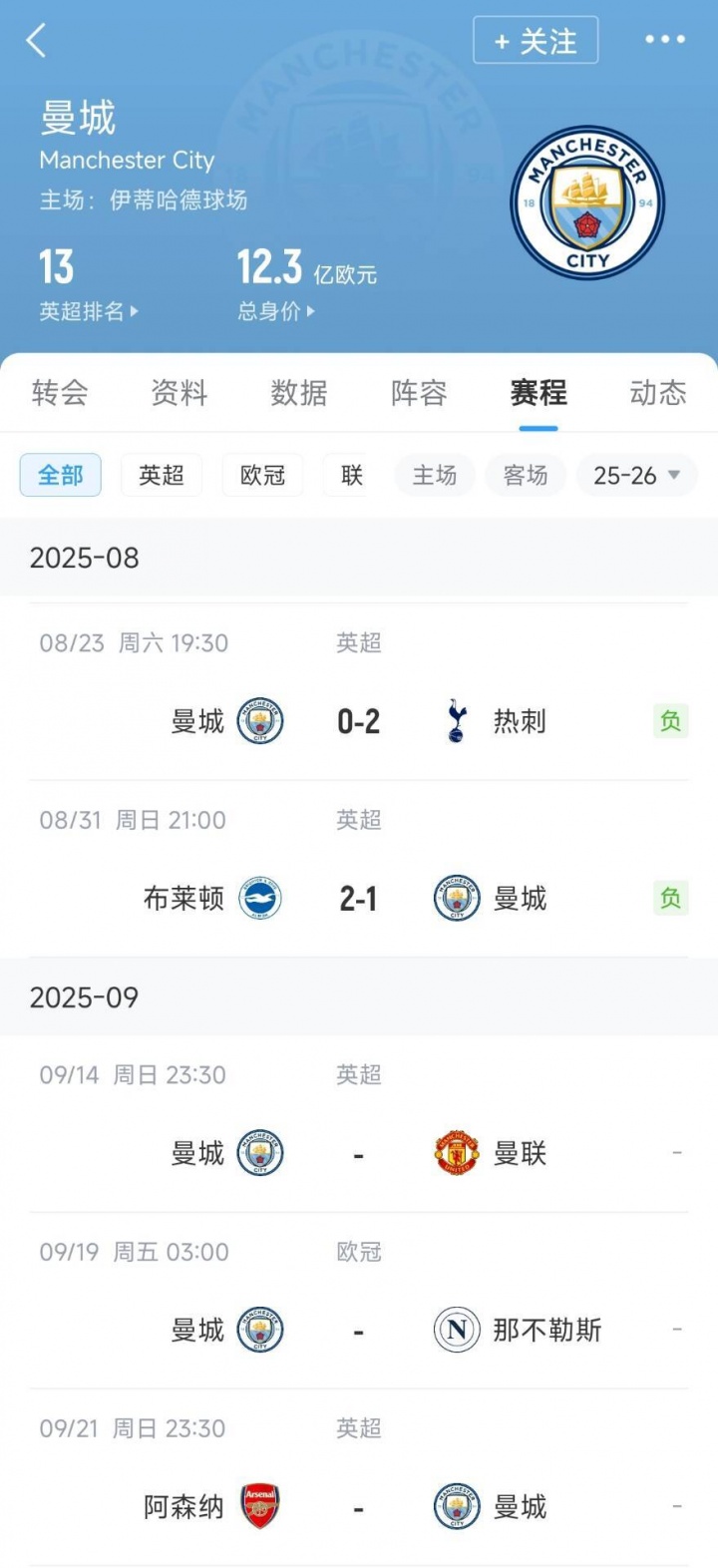伤病潮重创曼城:两连败后迎战曼联、那不勒斯与阿森纳三重考验