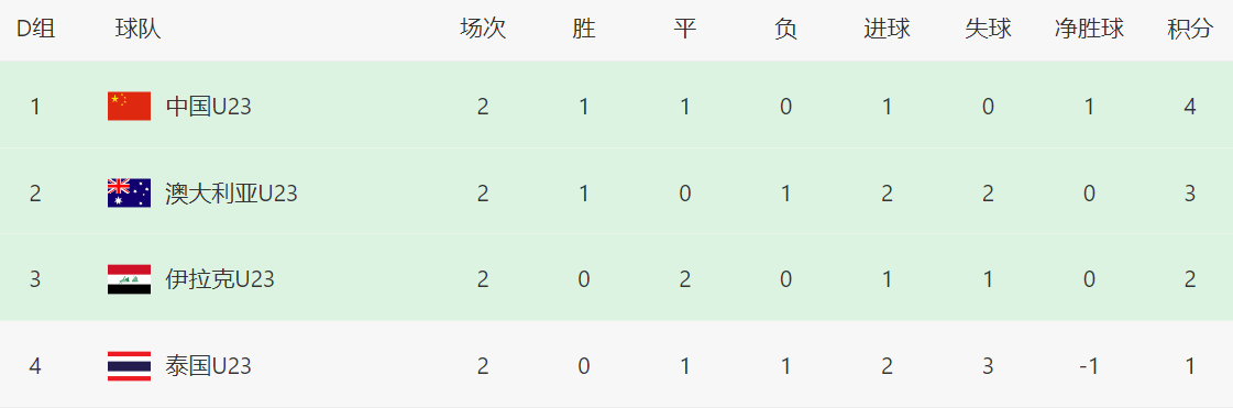 此外,中国队一旦输给泰国队,大概率面临被淘汰,因为同分情况下,优先比较胜负关系,中国队只能排在泰国队的身后,如果伊拉克队和澳大利亚队打平情况下,中国队也有可能出线,就是必须踢出1-2、2-3、3-4等以上的比分,如果0-1惜败则是被淘汰出局。